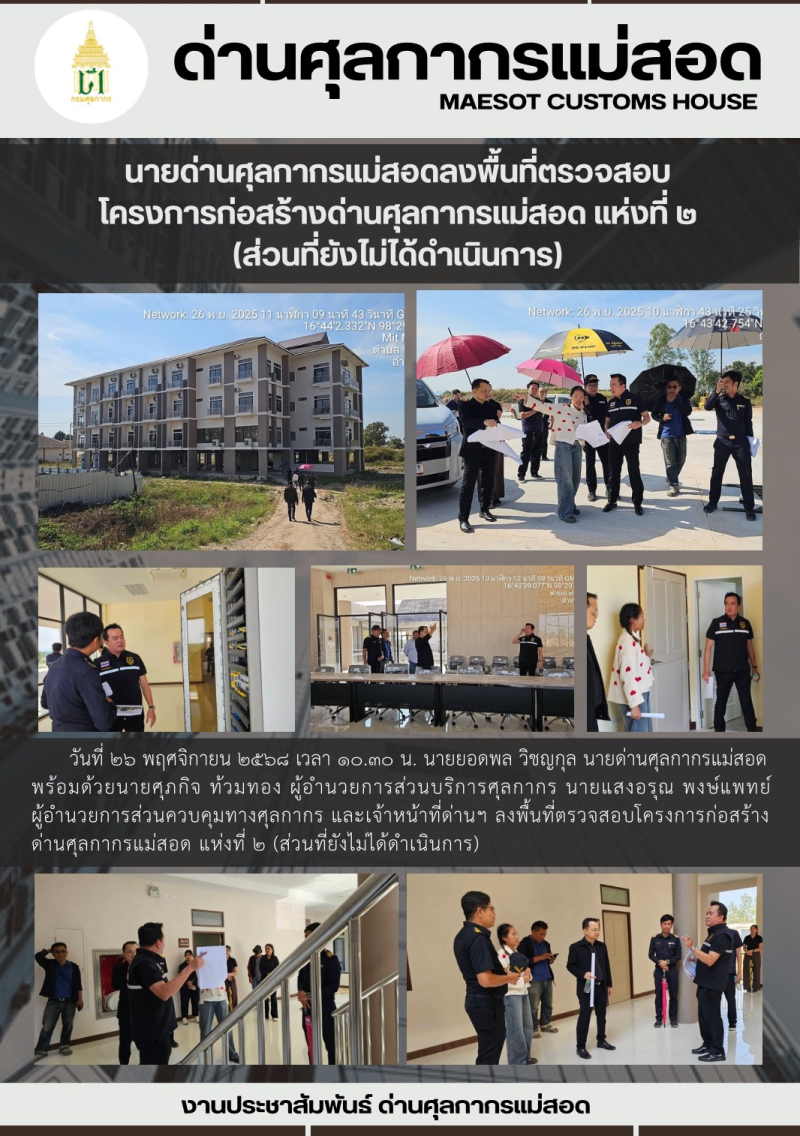 นายยอดพล วิชญกุล นายด่านศุลกากรแม่สอด ลงพื้นที่ตรวจสอบโครงการก่อสร้างด่านศุลกากรแม่สอด แห่งที่ 2 (ส่วนที่ยังไม่ได้ดำเนินการ)