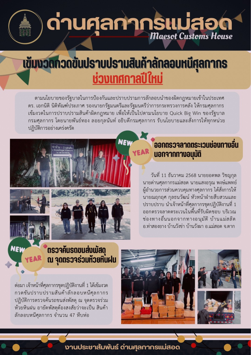 //++ด่านศุลกากรแม่สอด++เข้มงวดกวดขันปราบปรามสินค้าลักลอบหนีศุลกากรช่วงเทศกาลปีใหม่++//