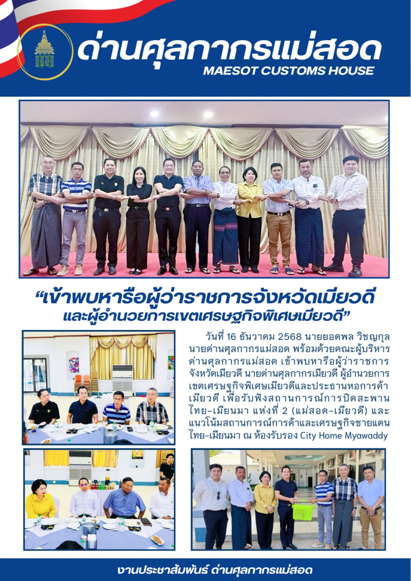 ***ด่านศุลกากรแม่สอด เข้าพบหารือผู้ว่าราชการจังหวัดเมียวดี และผู้อำนวยการเขตเศรษฐกิจพิเศษเมียวดี***