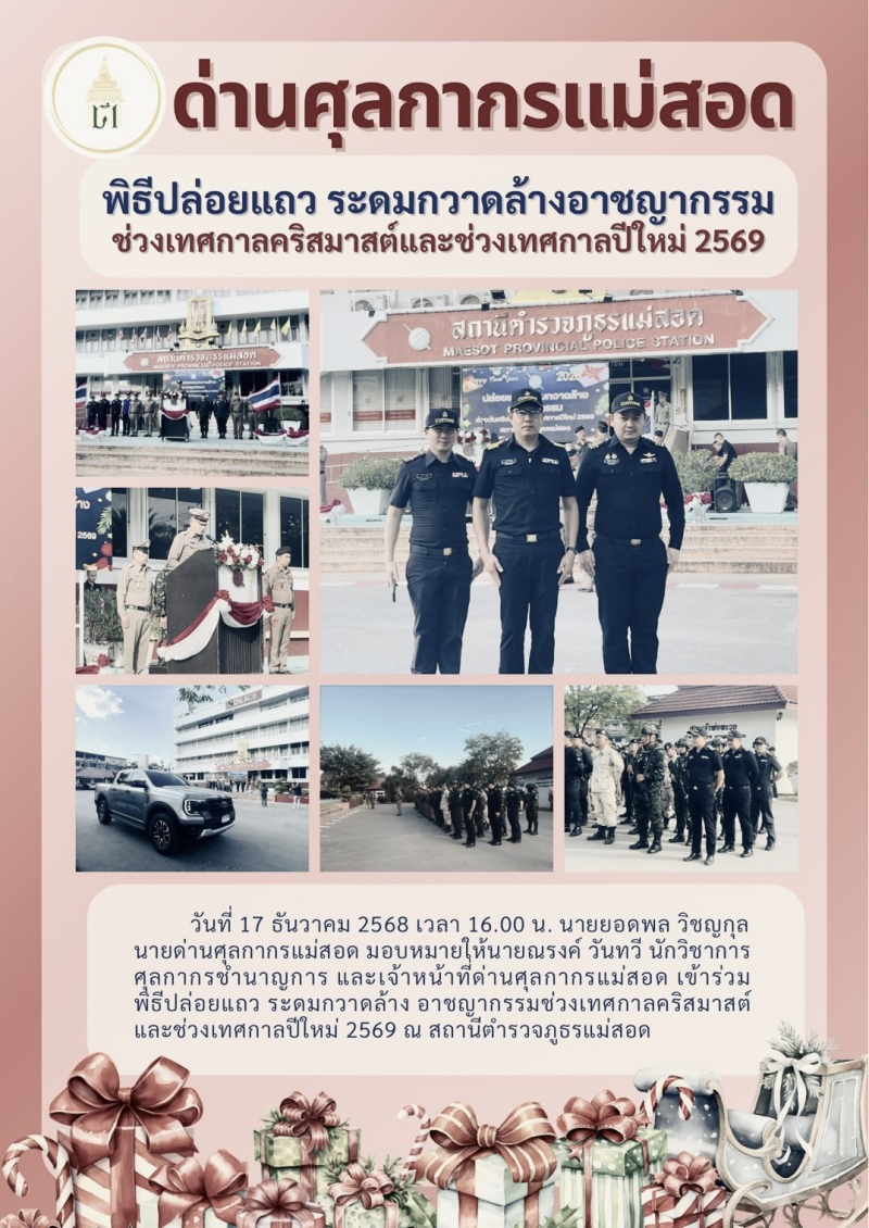 **ด่านศุลกากรแม่สอด เข้าร่วมพิธีปล่อยแถว ระดมกวาดล้างอาชญากรรม ช่วงเทศกาลคริสมาสต์และช่วงเทศกาลปีใหม่ 2569**