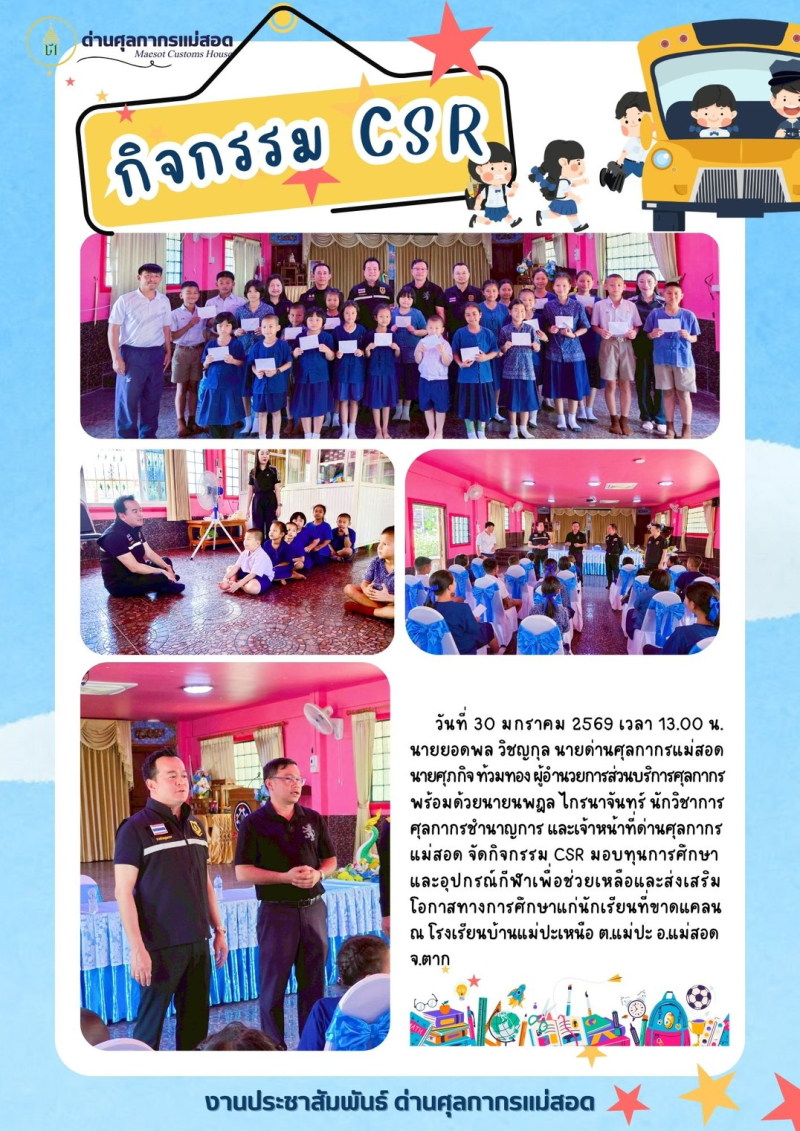 //++ด่านศุลกากรแม่สอด จัดกิจกรรม CSR มอบทุนการศึกษาและอุปกรณ์กีฬาแก่นักเรียนโรงเรียนบ้านแม่ปะเหนือ++//