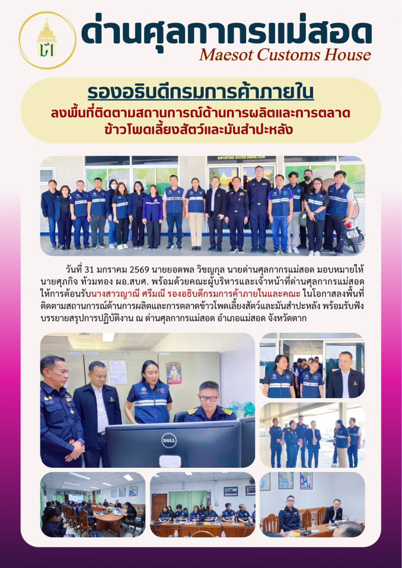 //++ด่านศุลกากรแม่สอด ให้การต้อนรับรองอธิบดีกรมการค้าภายใน ลงพื้นที่ติดตามสถานการณ์ด้านการผลิตและการตลาดข้าวโพดเลี้ยงสัตว์และมันสำปะหลัง++//