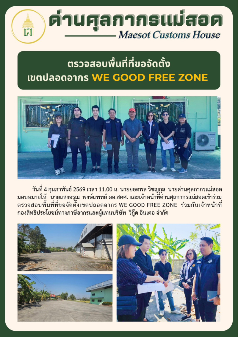 //++ด่านศุลกากรแม่สอด ลงตรวจสอบพื้นที่ที่ขอจัดตั้งเขตปลอดอากร WE GOOD FREE ZONE++//